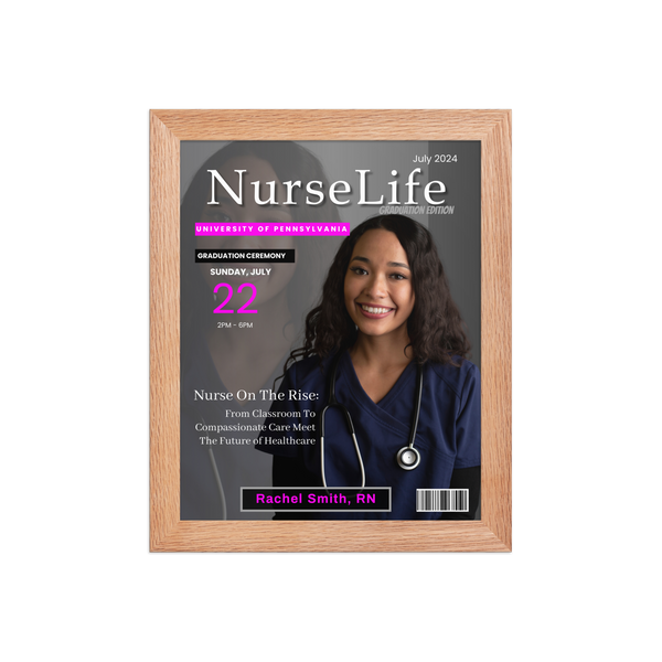 Transform her space with a personalized magazine cover that celebrates her nursing journey. This beautifully framed keepsake adds elegance and meaning to any room while creating a warm, inspiring atmosphere she’ll be proud to display.